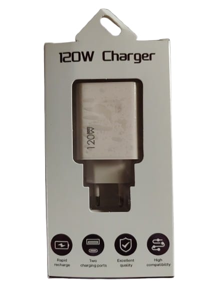 chargeur rapide + cable usb c 120w 2 entréesChargeur rapide + cable USB C – 120W – 2 entrées